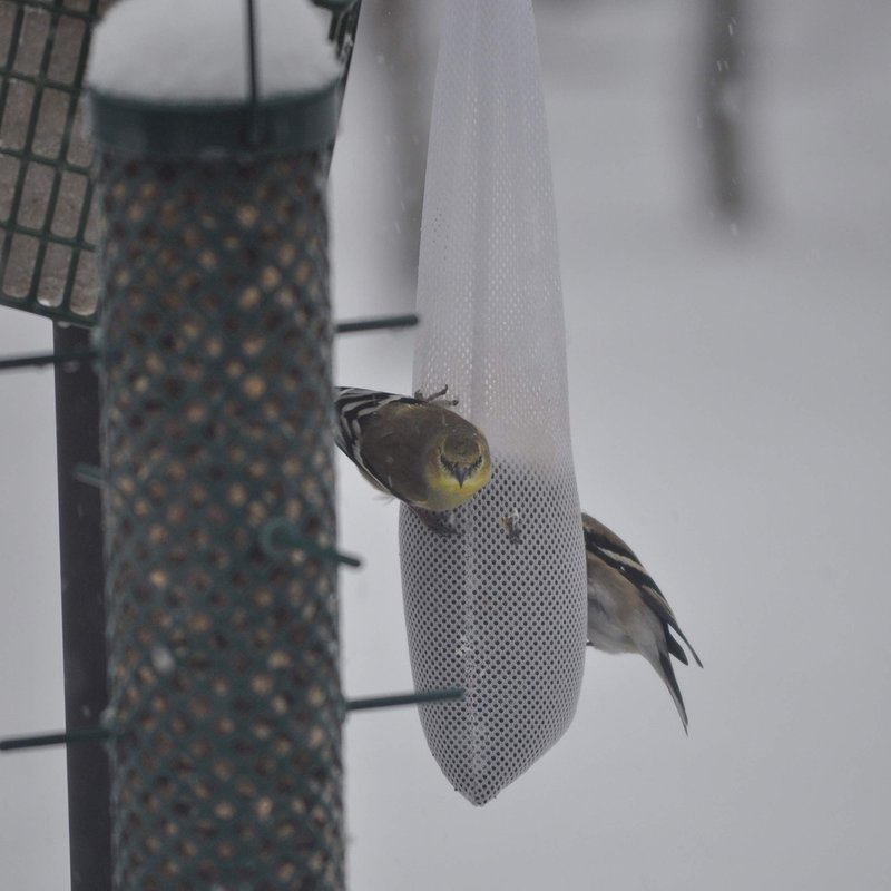 - Fill bag over paper to catch lose seeds, attracts finches, and other small songbirds