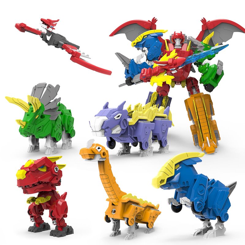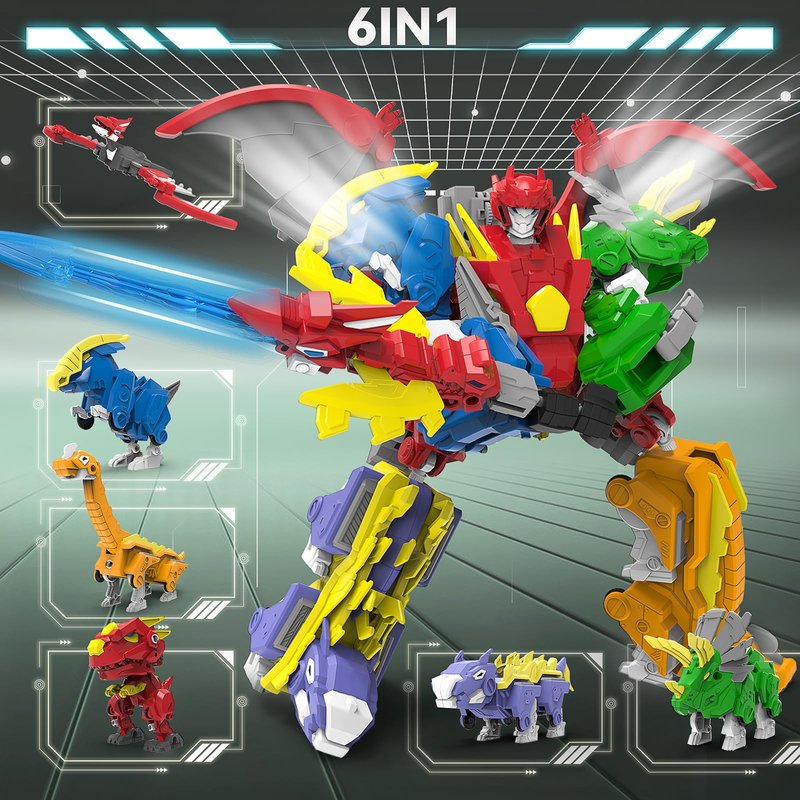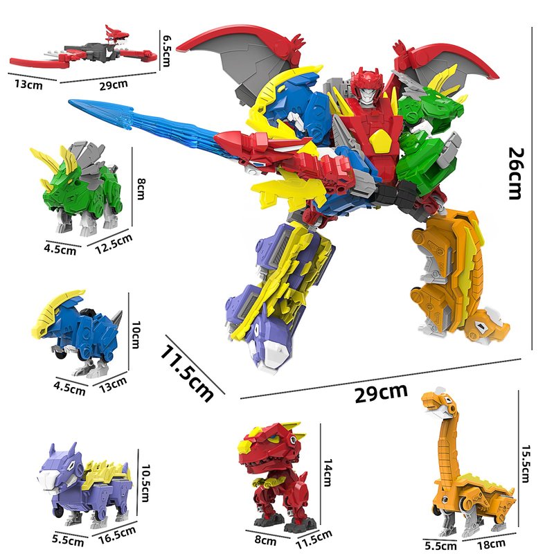 Introducing our Dinosaur Combined Robot Toys - a 6-in-1 deformation robot set that includes 10-inch take apart robot figures. This set allows children to create their own dinosaur world by combining the six parts: Tyrannosaurus Rex, Triceratops, Brachiosaurus, Stegosaurus, Paractylosaurus, and Pterosaurus. With a variety of gameplay options, this toy stimulates children's hands-on and cognitive abilities while providing endless fun. It helps develop logical thinking, practical skills, and reduces reliance on electronic devices.