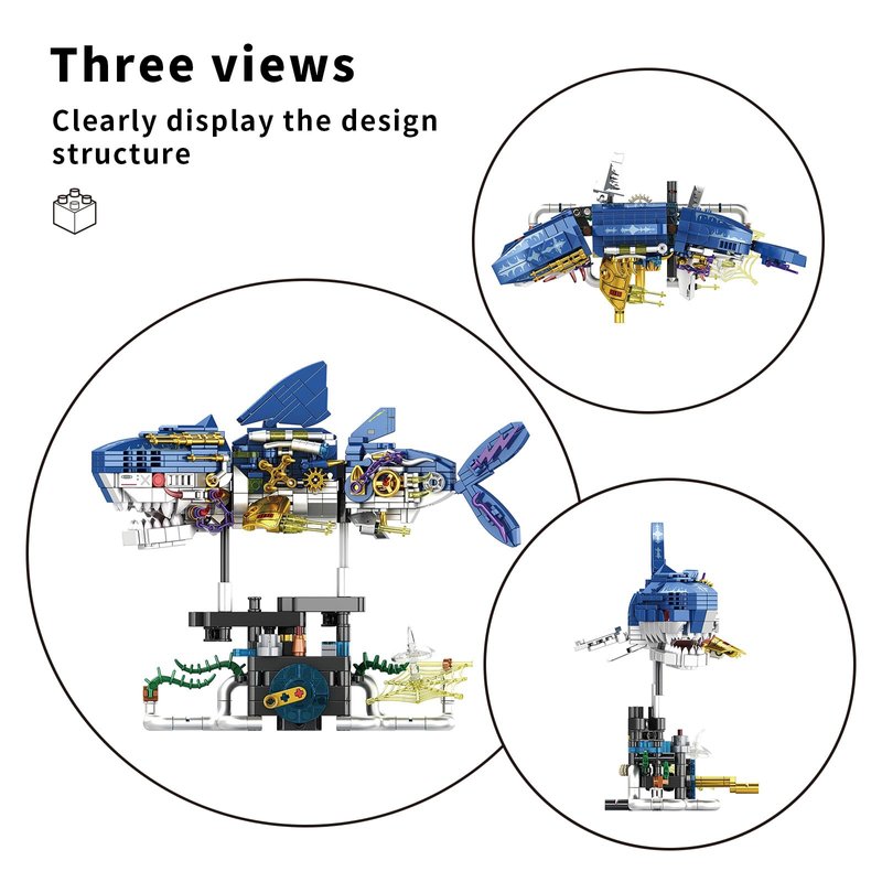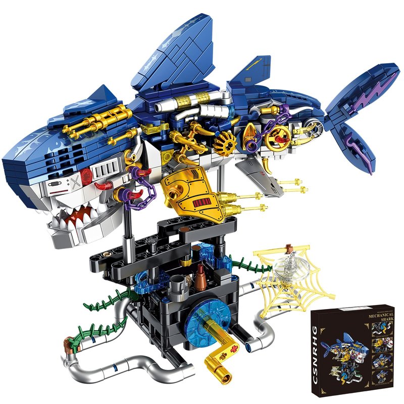 Mechanical Shark Building Block Toy:Build a mechanical shark that measures 9.3 inches long, 5 inches wide, and 7.8 inches high. This set is designed for builders aged 8 and up, blending creativity with hands-on fun.