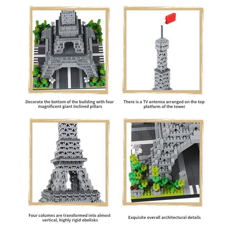 - Exquisite replication, the beauty of Paris landmarks:This French Eiffel Tower model building block perfectly replicates this world-famous steel building miracle with fine proportions. Each building block is carefully designed to ensure rich details, from the hollow structure of the tower body to the exquisite decoration at the top of the tower, showcasing the unique charm of the Eiffel Tower and the romantic atmosphere of Paris