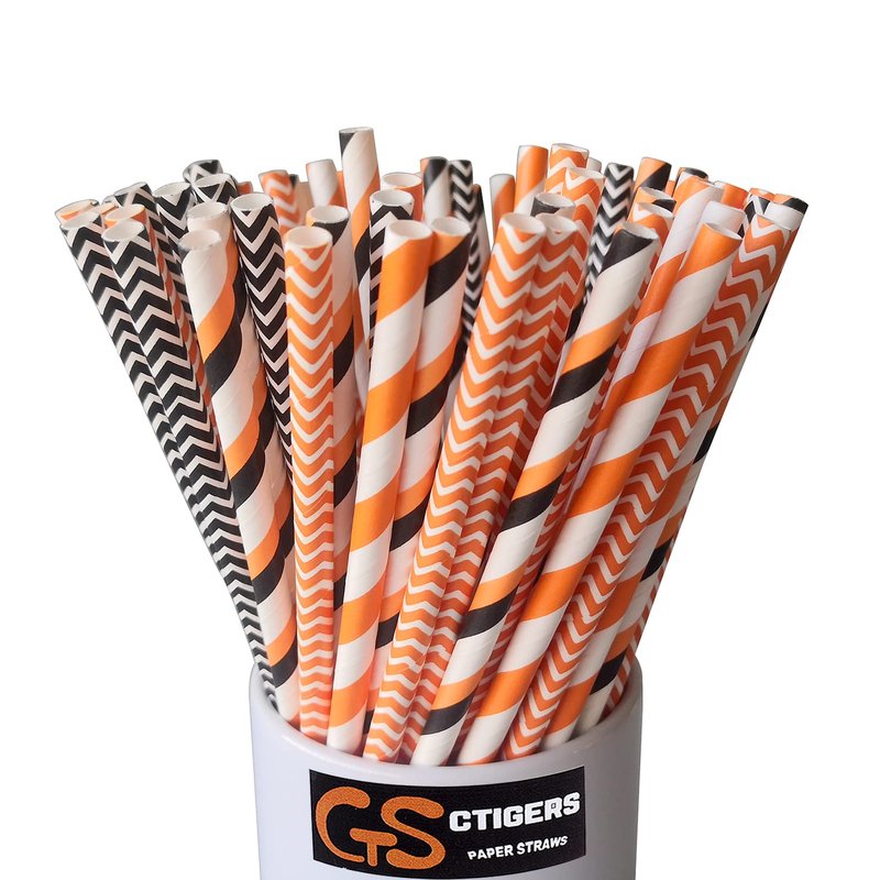 CTIGERS Halloween Party Paper Straws Black and Orange Box of 100