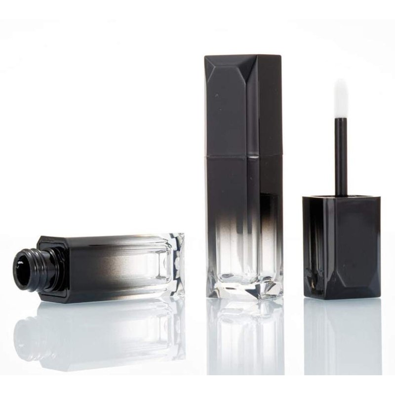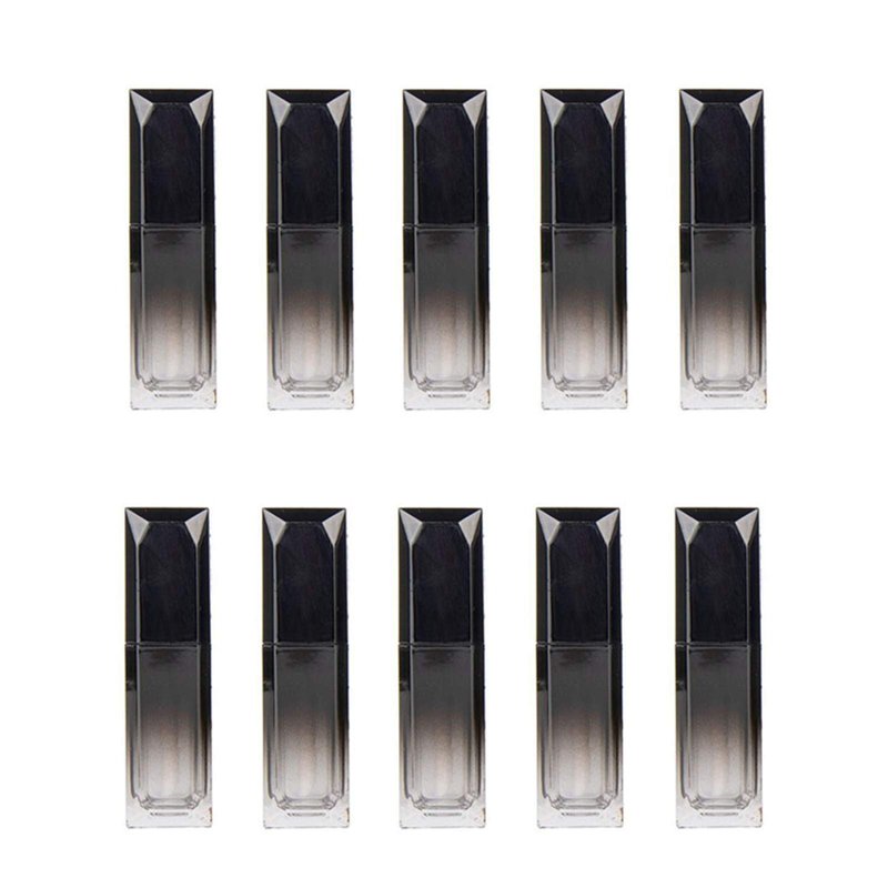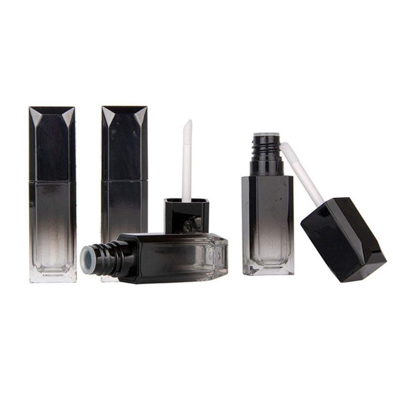 10 Pieces gradient black square lip gloss tube empty refillable lips gloss bottles 5ml DIY cosmetics lip glaze bottles with brush.