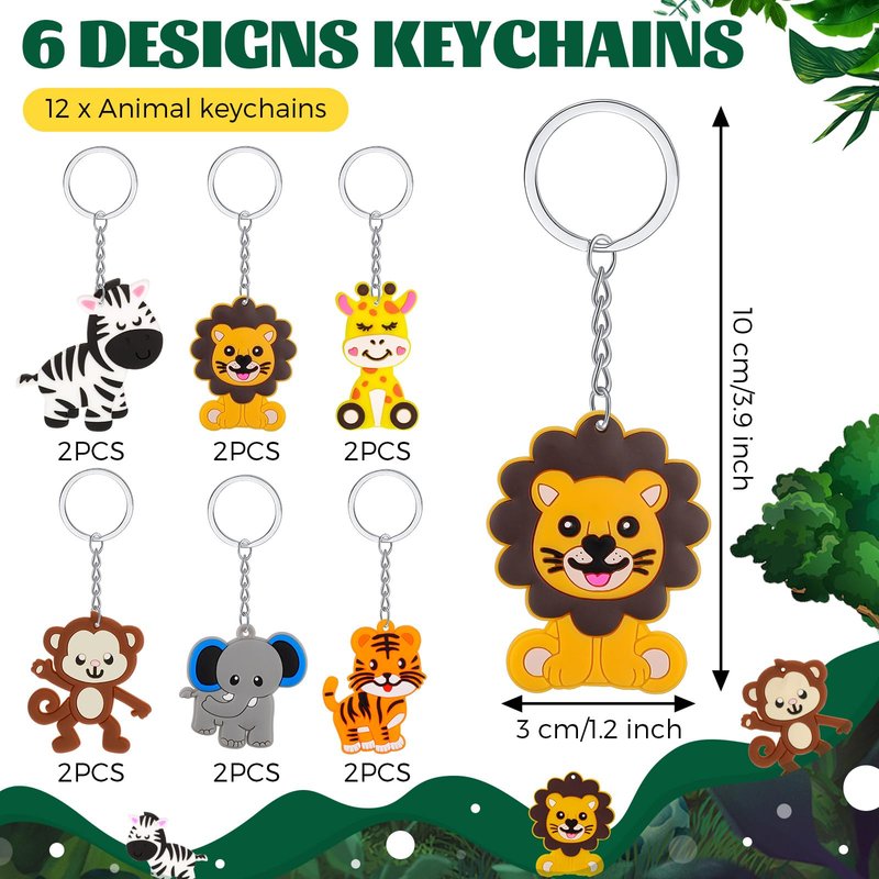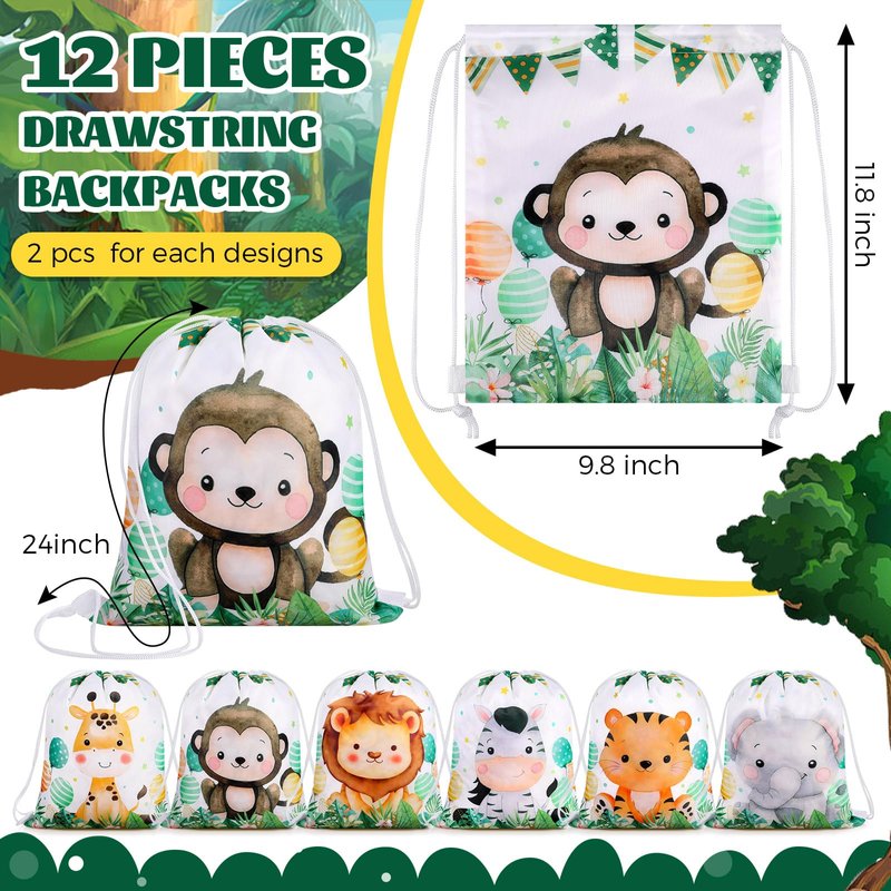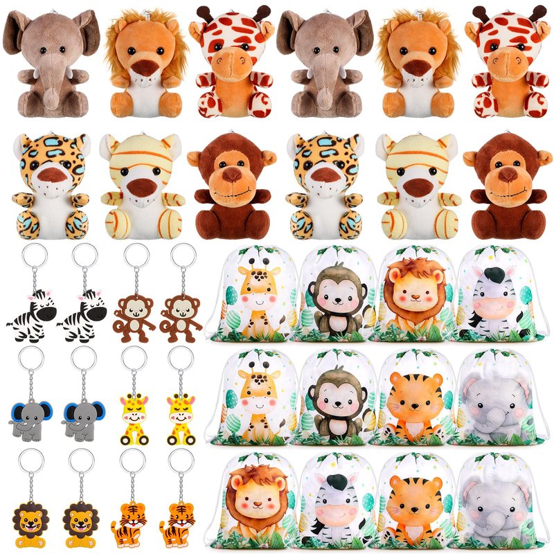 - Rich Content: you will receive a total of 36 pieces safari theme party supplies, includes 12 pieces animal theme drawstring backpacks in 6 styles (2 of each style), 12 pieces plush animals (6 animals, 2 of each), 12 pieces wild animal keychains (6 animals, 2 of each); Various styles of animal designs and bright colors allow them to be favored many animal fans