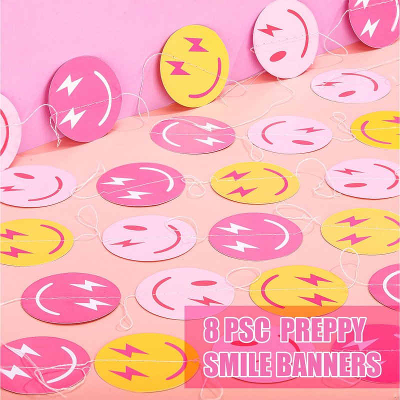 - Preppy Birthday Decorations: the package contains a total of 8 smile face hanging banners, each banner has 8 lovely smiling faces; Sufficient quantity allows you to decorate the rooms and make it more warm and atmospheric