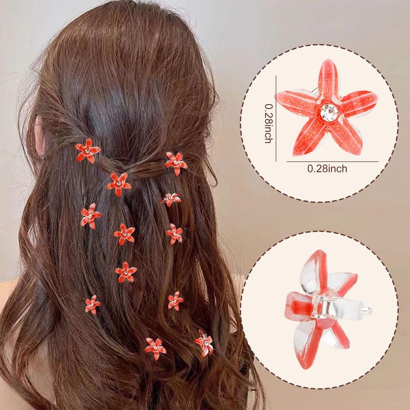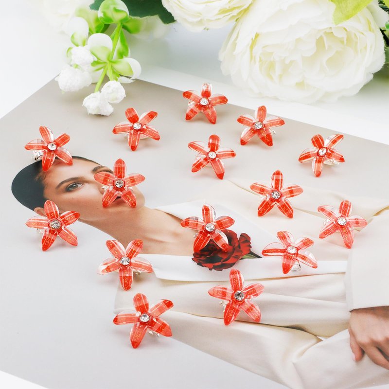 CUBACO Red Flower Clips for Women, 30pcs Mini Hair Clips Small Flower Hair clips for Girls Cute Flower Clips Crystal Hair Clips, Girls Tiny Hair ClipsRed Flower Hair Accessories