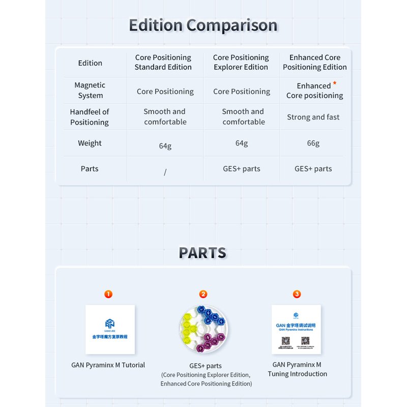 - ✅A Pyraminx Cube from GAN👍 - GAN is one of the most famous speed cube manufacturer in the world. A Pyraminx cube from GAN is defenitely not bad as always. We recommend customers buying the Enhanced Version which provide a better pyraminx cubing experience.
