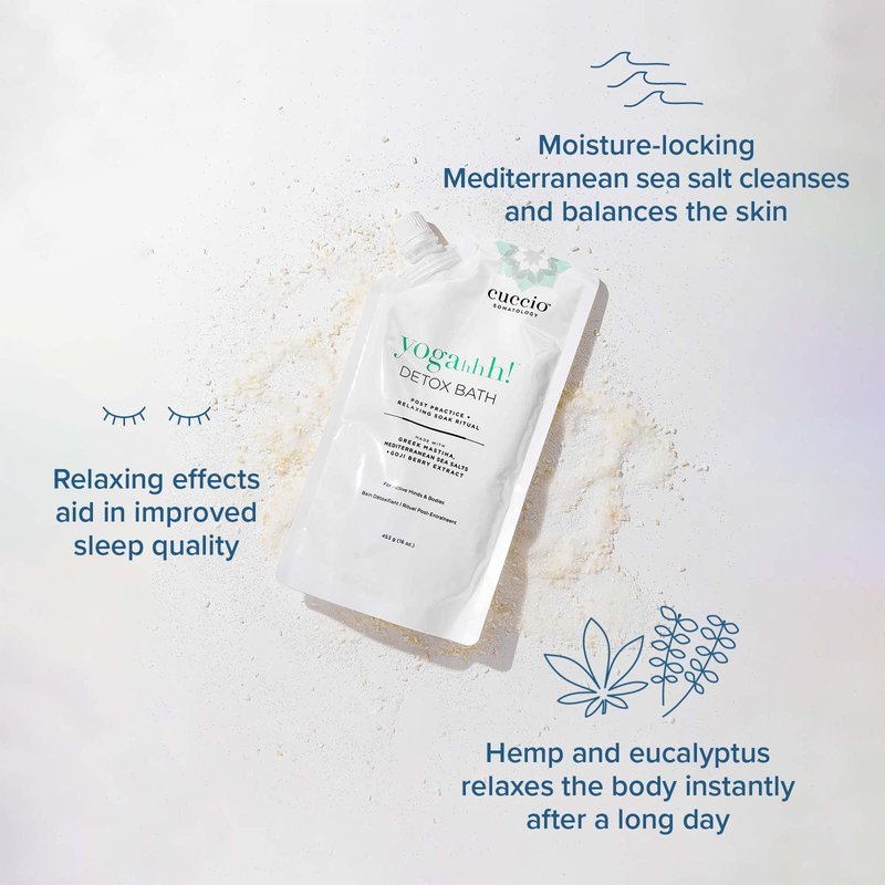 Cuccio Somatology Yogahhh! Detox Bath - Post Workout Relaxing Body Soak - Vegan Formula - Epsom Salts, Goji Berries, Eucalyptus, Greek Mastiha - 16 oz
