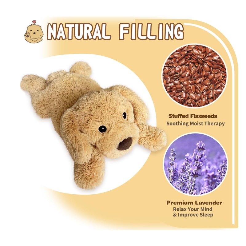 Cuckool Golden Retriever Stuffed Animals, Microwavable Stuffed Animals Heating Pad for Cramps, Pain Stress Relief, Heatable Coolable Lavender Scented Plush Toy for Anxiety, Women & Kids Bedtime