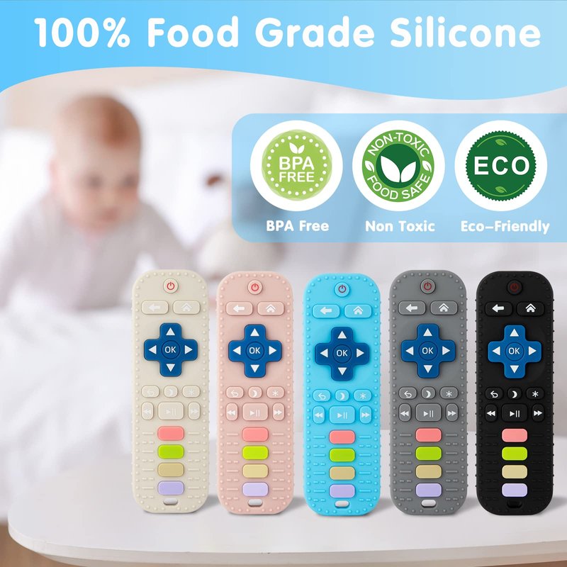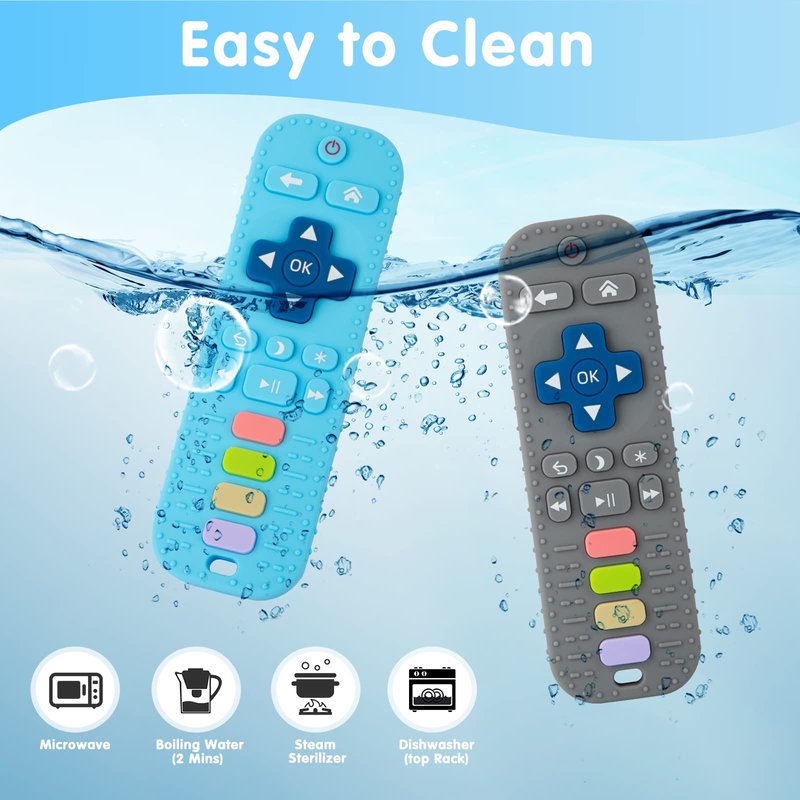 - 【Explore Toy】Baby remote control teething are made of durable soft silicone, to provide a strong, yet soft biting experience. Mouthing helps babies explore the world using their senses to learn about texture, taste and temperature and build muscles they will use later in life for eating and speaking