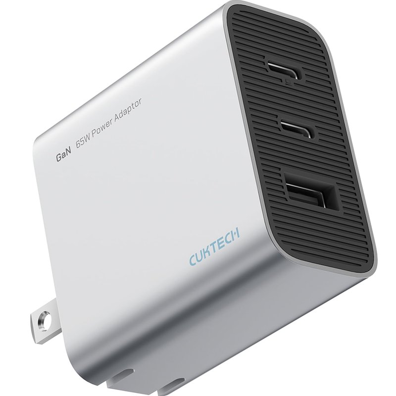 CUKTECH 65W USB C Charger, GaN III PD Fast Charger, PPS 3-Port Compact Foldable Adapter Compatible with MacBook Pro/Air, Dell XPS 13, iPhone 16/15Pro, Switch, Steam Deck, Galaxy S24 (Silvery, 3-Port)