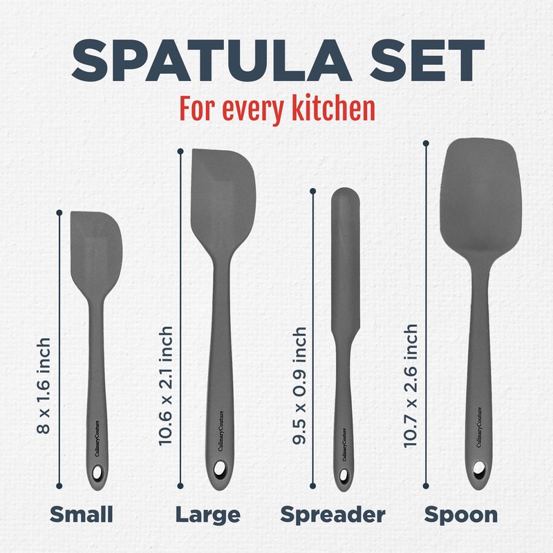 Culinary Couture 4-Piece Grey Silicone Baking Spatula Set - Rubber Spatulas Silicone Heat Resistant up to 608°F, BPA-Free - Silicone Spatula Set for Nonstick Cookware - Silicone Baking Utensils
