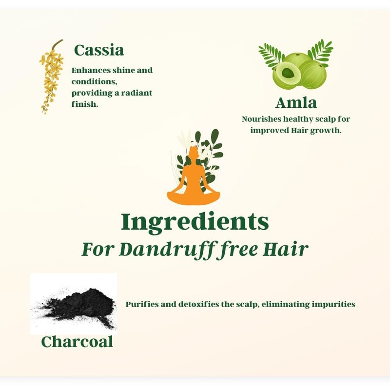 - Goodness of Premium Ingredients: Experience the power of our premium ingredients Amla- Amla is considered as a preventive against premature graying of the hair and hair loss. It strengthens and gives volume and shine. Charcoal Powder- Organic charcoal has the strongest physical adsorption forces, acts like a magnet to attract and absorb dirt, pollution, and oil from the skin surface.Cassia- They also add moisture, volume, and lustre to the hair.