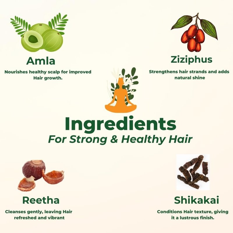 - Goodness of Premium Ingredients: Experience the power of our premium ingredients, Amla- Amla is considered as a preventive against premature graying of the hair and hair loss. It strengthens and gives volume and shine. Shikakai-Shikakai Powder is a scalp cleanser while makes the hair soft and silky. Reetha- makes your hair shiner, smoother, and more beautiful.