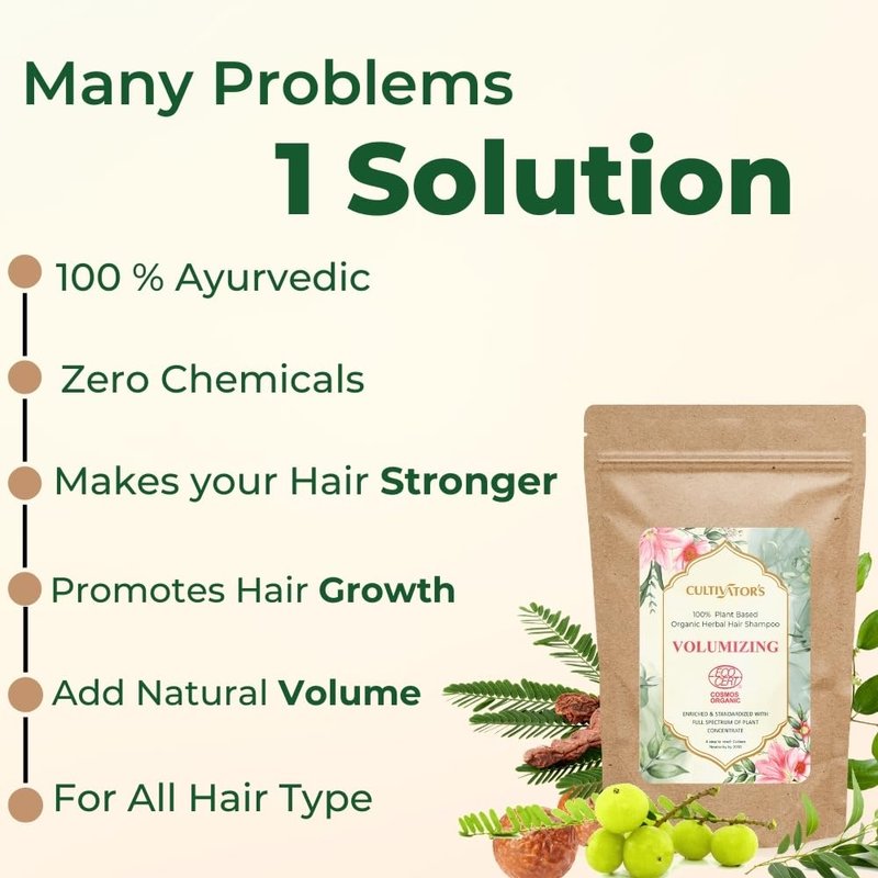 - Say hello to natural-looking volume: Cultivator’s Organic Herbal Hair Shampoo “Volumizing” combines the goodness of nature & science with innovation. A unique blend of Soapnut, Sidr, Shikakai, amla & Eucalyptus volumizes your hair naturally. The organic hair shampoo is a powerhouse of full concentrated plant powders that works miracles for hair & scalp health.