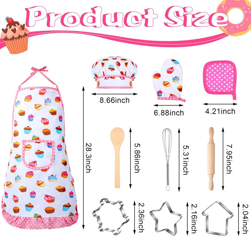 - Enjoyable and Interesting Moment: with these baker costumes for kids and cooking tools, it is an ideal opportunity to get kids interested in cooking, teach them basic cooking and baking skills, and have them assist mom and dad in the kitchen; Watch their faces light up as they take their masterpieces out of the oven while wearing a chef hat and apron