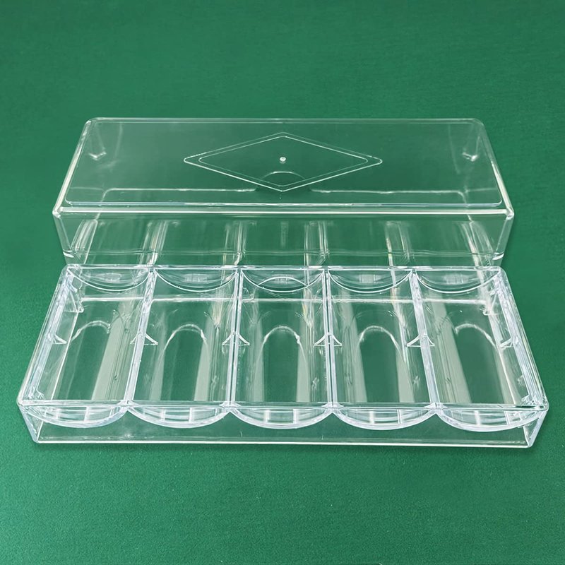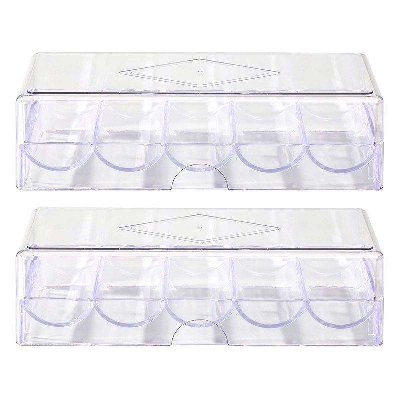 CUNHUY 2PACK Clear Acrylic Poker Chip Rack with Cover/Casino Chip Tray with Lid, Holds 100 Chips Each