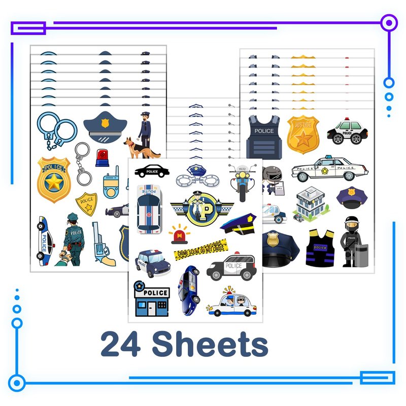 CupaPlay 300+PCS Police Car Tattoos Temporary Stickers for Kids - Police Car Theme Party Supplies Decorations Birthday Baby Shower Party Favors Goodie Bag Stuffers Favors Prize(24 Sheets)
