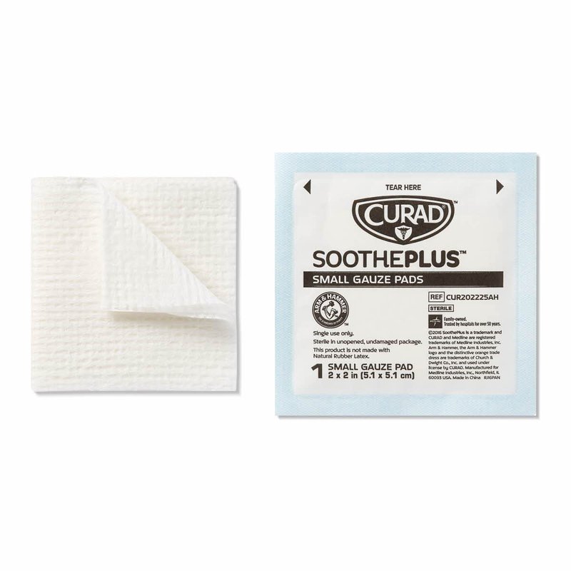 Curad SoothePLUS Gauze Pads with ARM & HAMMER Baking Soda, 2" x 2", 25 count, White