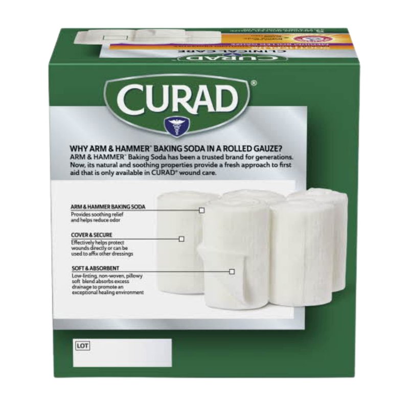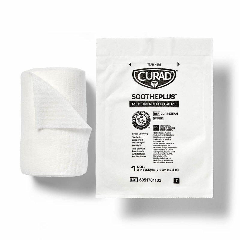 Curad SoothePlus Rolled Gauze with Arm & Hammer Baking Soda, 3" x 2.5 yds, 5 count (Pack of 1)