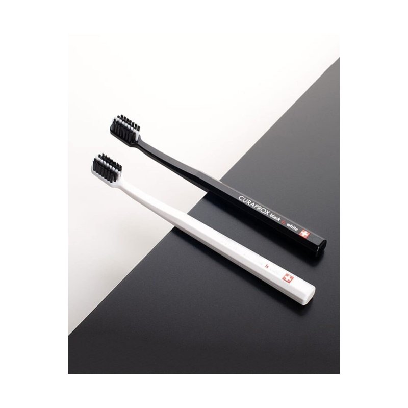- Black is White Set: This set of soft toothbrushes for adults features 2 Curaprox toothbrushes: 1 white toothbrush and 1 black toothbrush