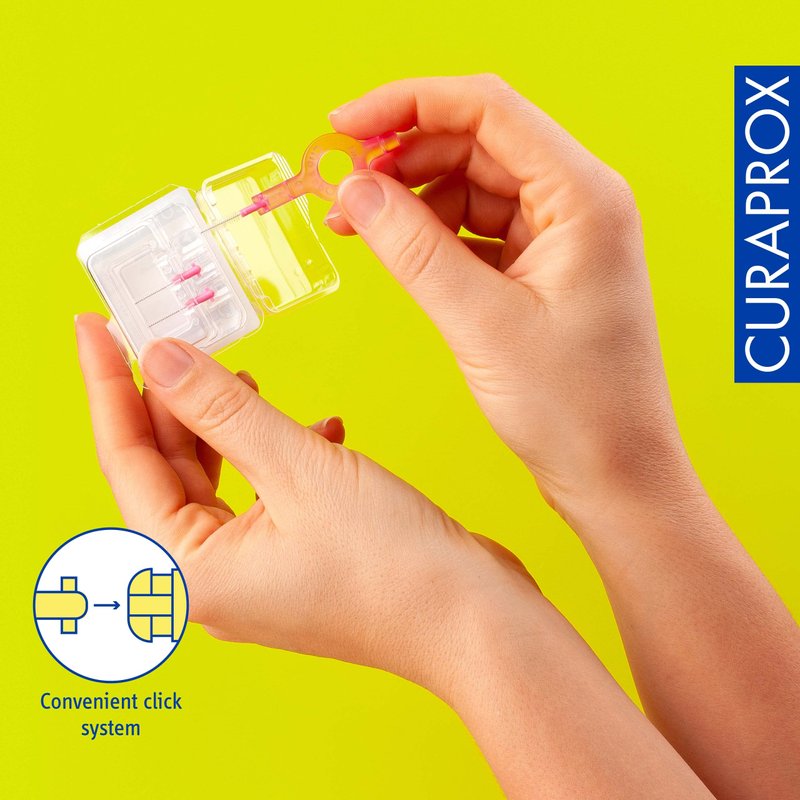 - Includes: 5 CPS 08 Prime interdental brushes with 0.8 mm diameter and 3.2 mm effectiveness, 1 UHS 409 brush holder, and 1 UHS 470 brush holder, both with a convenient click system
