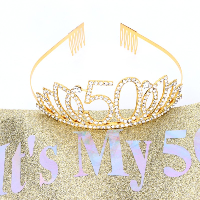 - BEAUTIFUL & ELEGANT: Gold Crystal Princess Crown and 50th Sash will make you the center of attention on your special day. It’s the perfect finishing touch for your birthday look and make you more glamorous. Enjoy the compliments it will bring you at the party