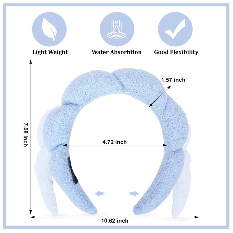 - Perfect Size:The length of the spa hair band is about 7 inches, the width is about 5.11 inches. The makeup headband has good elastic, easy to wear, does not fall off,suitable for adults or children