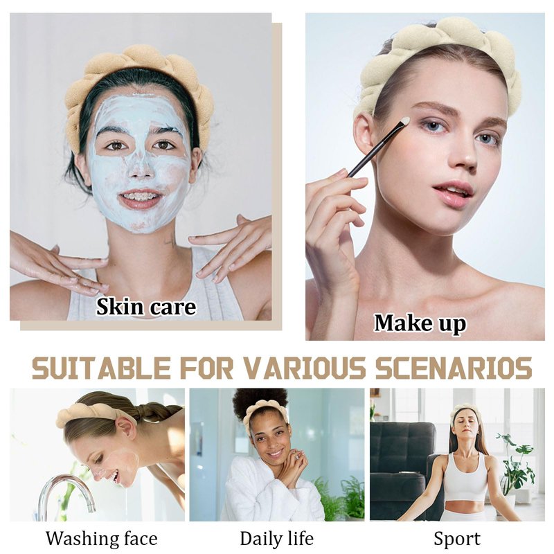 - Perfect Size:The length of the spa hair band is about 7 inches, the width is about 5.11 inches. The makeup headband has good elastic, easy to wear, does not fall off,suitable for adults or children