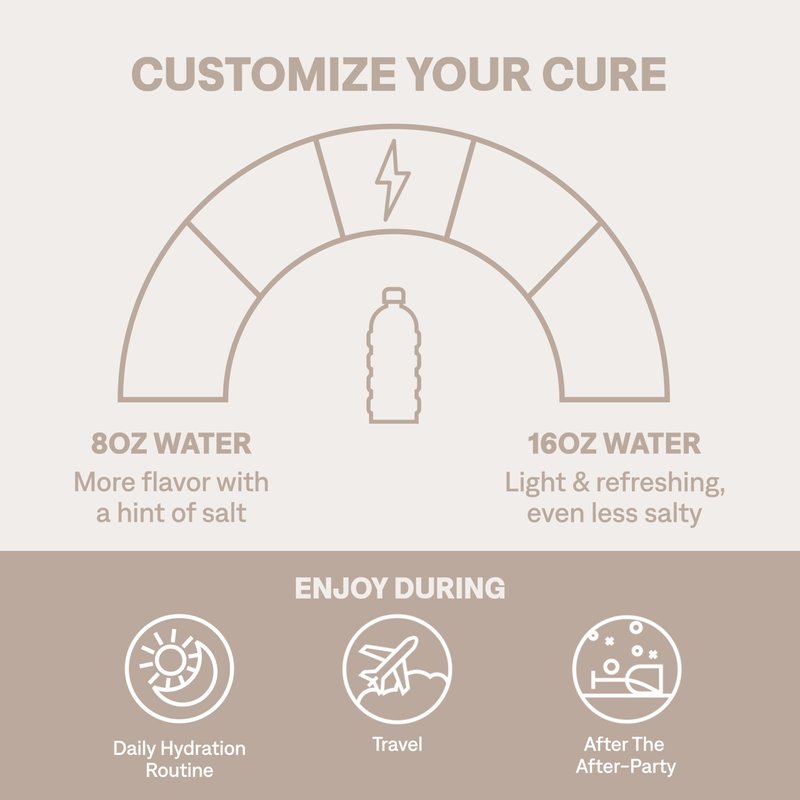 - POWERFUL DEHYDRATION RELIEF: Named by Women's Health as the Best Hydrating Drink Mix! Hydration is the foundation of health. But science shows that staying hydrated often requires more than water alone. With 4x the electrolytes of leading sports drinks, Cure restores balance to your body so you can operate at 100%.
