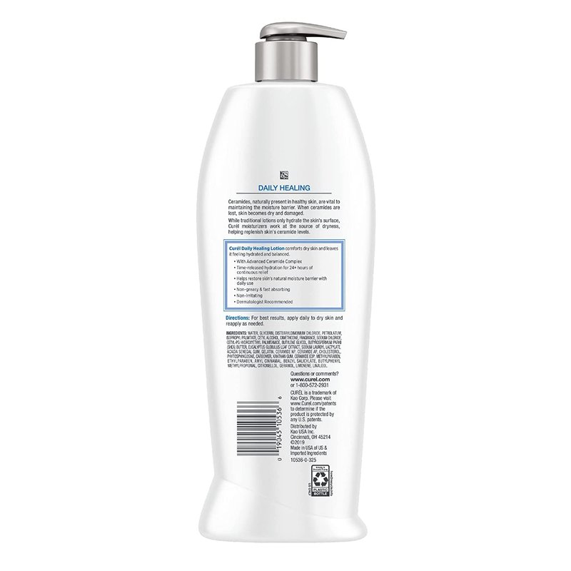 Curel Daily Healing Moisture Body Lotion, Original Formula - 13 Fl Oz (Pack of 2) - Curél Daily Healing Lotion, with Advanced Ceramide Complex, restores skin's ceramide levels to help retain moisture and prevent symptoms of dry skin from returning. This non-greasy, quick-absorbing lotion features time-released moisturizers to hydrate and relieves dry skin all day long. Recommended Use: For best results, apply daily to dry skin. Reapply as needed.