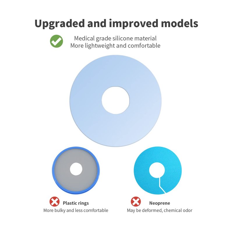 - UPGRADED DESIGN: Removed the plastic ring, more lightweight; the sealing ring is made of softer silicone instead of neoprene, no chemical smell, more comfortable.