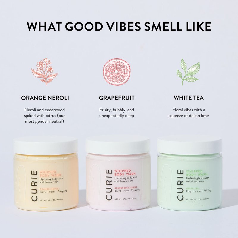 - LOVE AT FIRST WHIFF: Curie body washes for women and men come in White tea, Orange Neroli, and Grapefruit Cassis to seduce your senses. Get it as an any occasion gift or treat yourself for all you do!