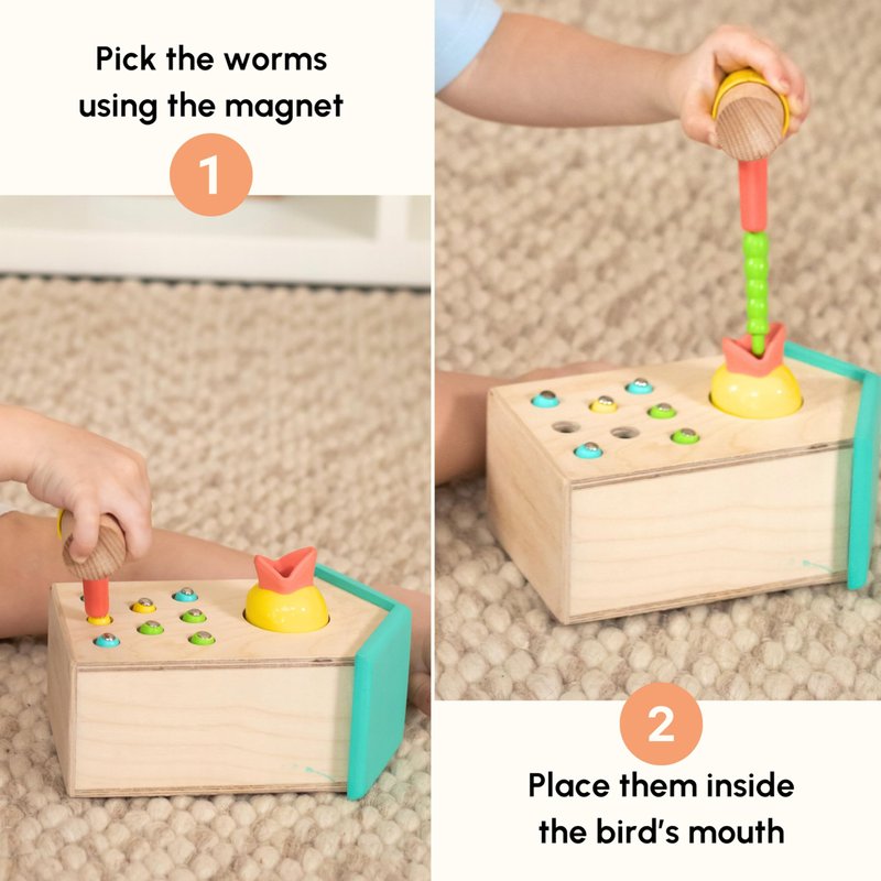 - MONTESSORI TOY FOR 2+ YEAR OLDS: Use the magnet to pick up colorful worms and place them in the bird's mouth. This magnetic bird feeder toy is perfect for imaginative pretend play and developing essential skills in kids.