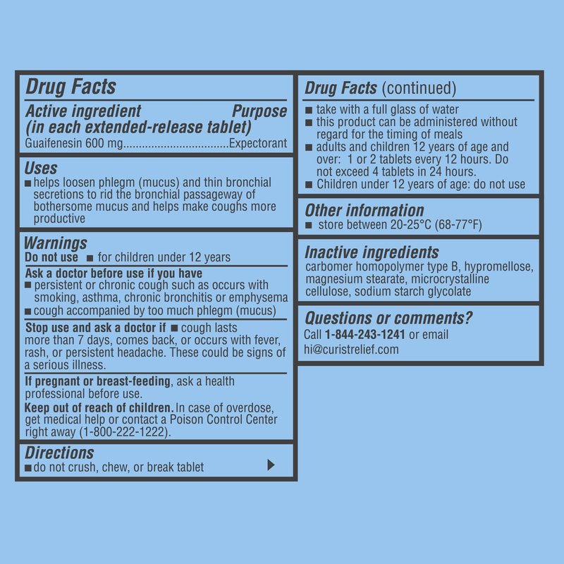 - FOR AGES 12 & UP: Curist Guaifenesin 600 mg ER (extended release) provides both adults and kids mucus relief (ages 12 and over).