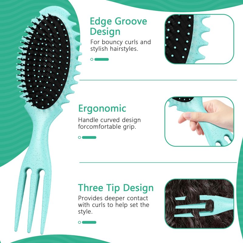 - [ERGONOMIC DESIGN] : The curly hair brushes's handle and bristles are ergonomically designed to glide smoothly through curly hair to ensure even distribution and seamless, efficient styling. The grooves on the handle of the comb ensure that you have a firm grip without slipping, allowing for easy brushing and styling control.