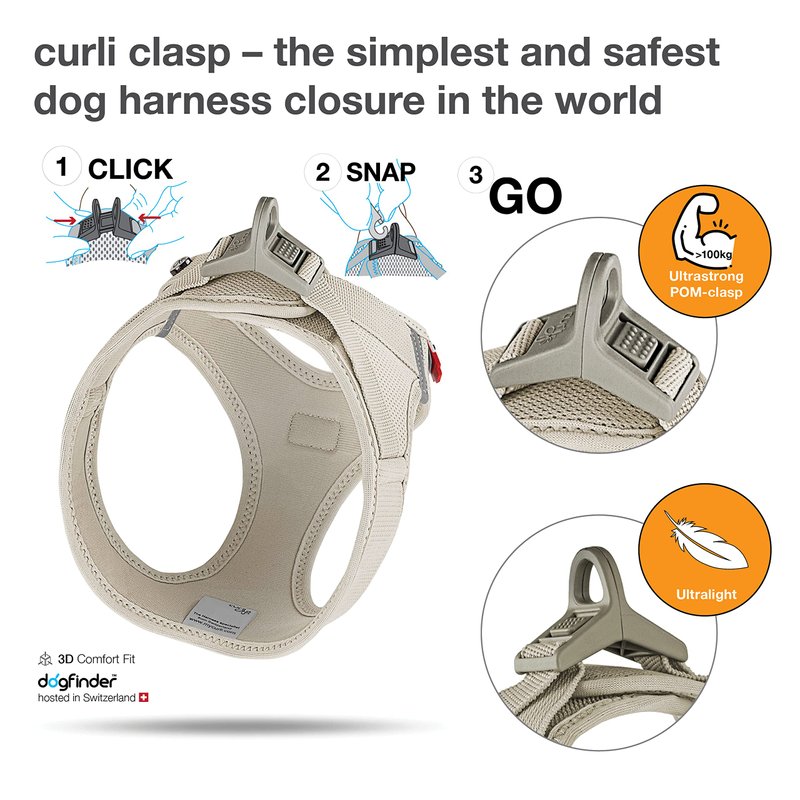curli Vest Harness Clasp Air-Mesh Dog Harness (safe dog accessories, no pressure points, improved fit, harness with curli clasp buckle)