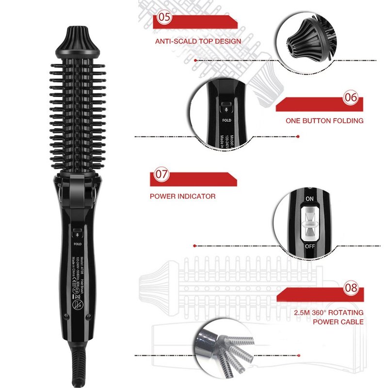 Curling Iron Foldable, Ceramic Tourmaline Anion Hair Brush Curling Iron Hair Styling Tools with Anti scald Handle for All Hair Types (US Plug 110‑240V)
