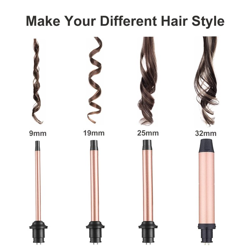 4 in 1 Interchangeable Ceramic Curling Iron Set offers 4 different size of barrels: