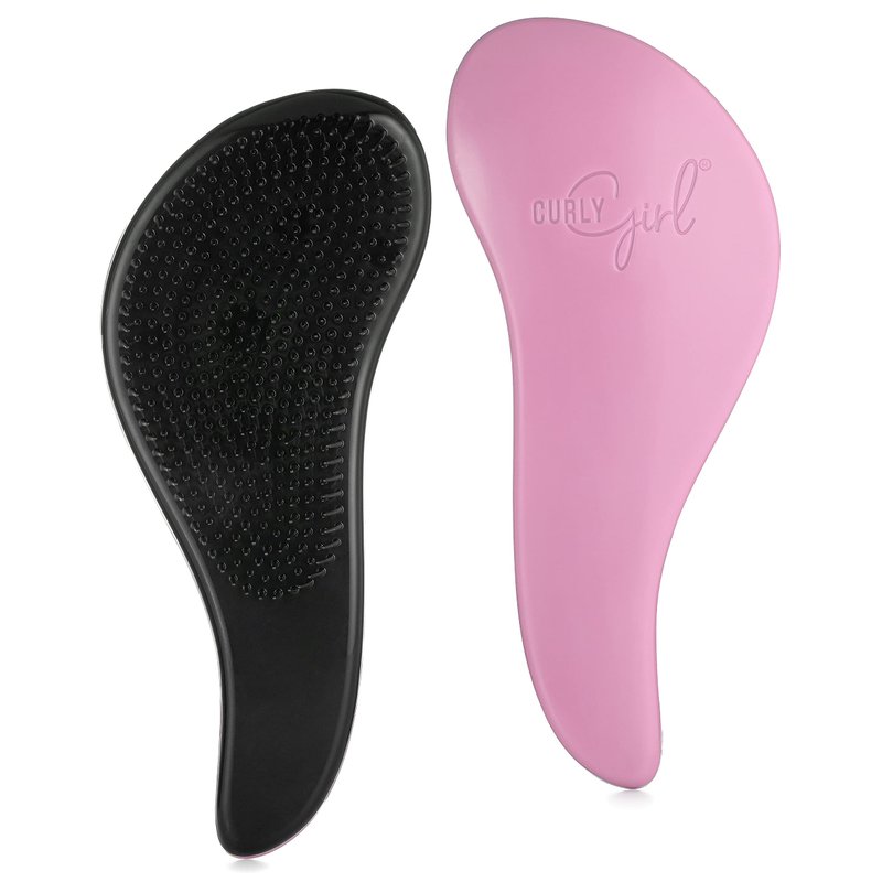 Curly Girl Ultra Soft Microfiber Towel. This ultra soft and large towel is 22" x 39" for thick and longer curls. Curly Girl anti frizz towel. Machine wash cold water. A Curly Girl detangling brush has flexible bristles, makes it easy to detangle, and can be use on wet or dry hair.