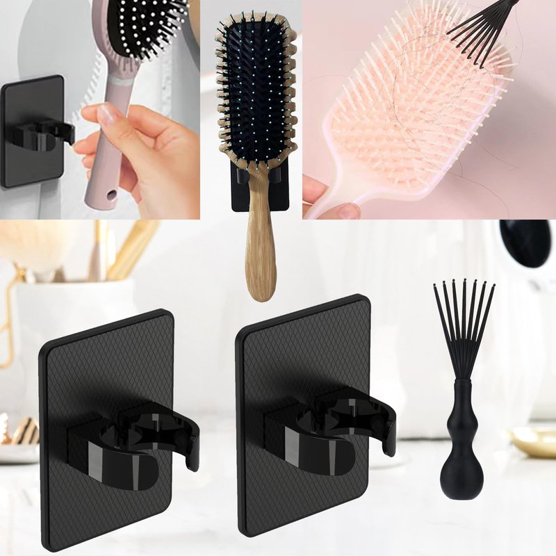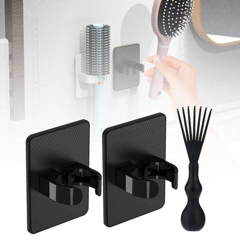 Curly Hair Brush Comb Holder, Curl Defining Brush Comb Cleaner Tool, 2 Pcs Comb Holder and 1pcs Comb Cleaner Tool, Comb Holder No-Drill, Suitable for Most Combs, for Home Or Salon Use. (black)