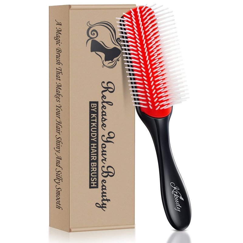 Curly Hair Brush Styling Brush 9 Row for Detangling & Defining Curls KTKUDY Hair Brush for Separating, Shaping Curls - Blow-Drying, Styling & Finishing Brush for Wavy, Curly or Coily Hair