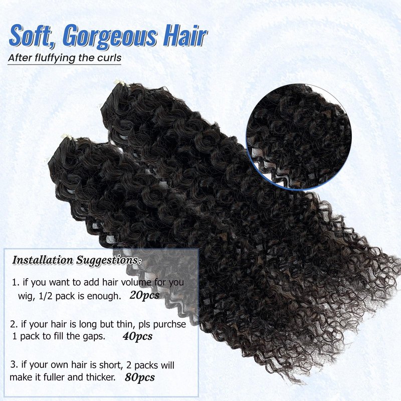 - Gorgeous Textures, Match Natural Hair Color Perfectly: the curly texture itself is great and true to the pictures online, and when you fluffing the curls, it will be more beautiful; y’all ladies, these tape in extensions blend seamlessly and literally look like they’re out of your scalp