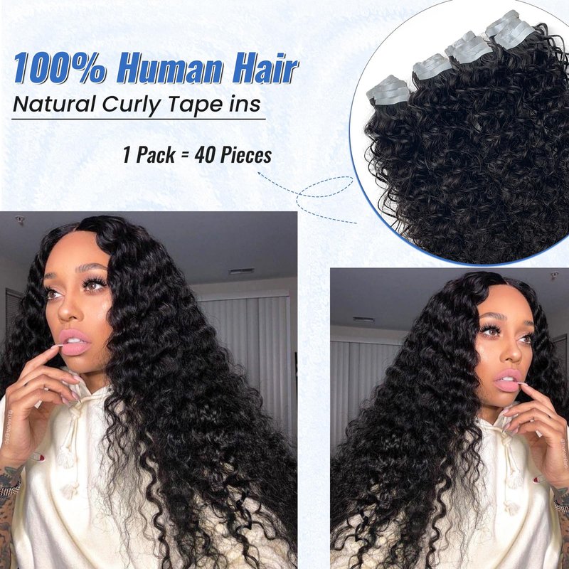 - Curly Tape in Hair Extensions Human Hair 40 Pieces 100G: Licoville curly tape in hair extensions give an easier option for black women/girls who want to add hair length/volume, usually 1 pack for long hair, 2 packs for short thin hair