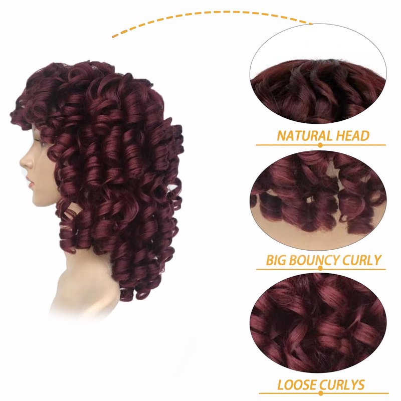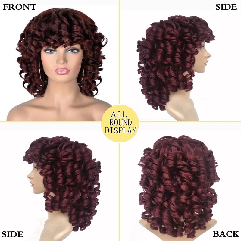Curly Wigs for Black Women Short Loose Curly Wigs for Black Women Short Curly Wigs for Black Women Big Curly Afro Wig for Black Women with Bangs Heat Resistant Hair Replacement Wigs for Women(99J)
