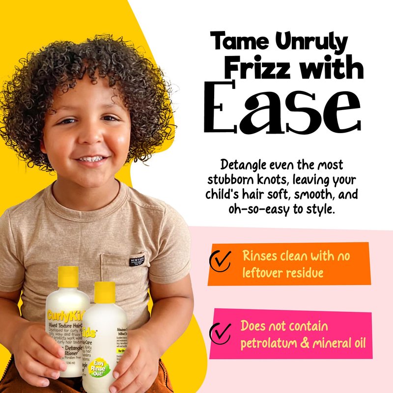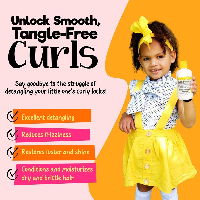 - TREAT YOUR LITTLE ONE'S LOCKS WITH LOVE: Treat your little one's locks with care by using our CurlyKids Detangle Spray and our CurlyKids Super Detangle Conditioner, developed specifically for children with curly, kinky, and frizzy hair, delivering maximum moisture and manageability.
