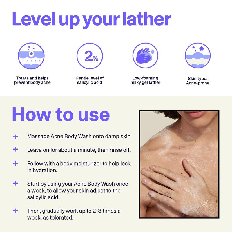 Bust through bacne while being kind to your skin with Curology deep-cleansing Acne Body Wash.