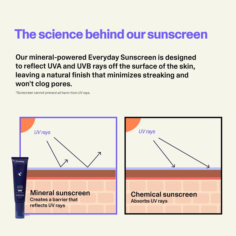 Curology Everyday Sunscreen for Face, SPF 30 Mineral Sunscreen Face Moisturizer with Zinc Oxide, Minimizes White Cast, Non-Greasy Finish, 2 fl oz