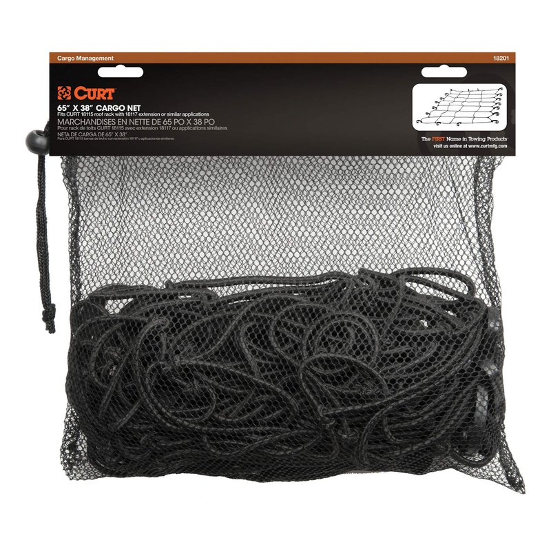 CURT 18201 65 x 38-Inch Elastic Cargo Net with Hooks for Roof Basket