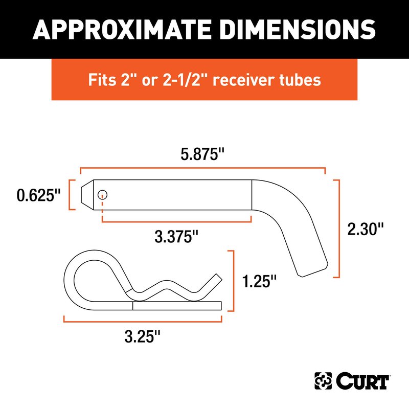 CURT 21580 Trailer Hitch Pin & Clip, 5/8-Inch Diameter, Fits 2 or 2-1/2-Inch Receiver, Clear ZINC