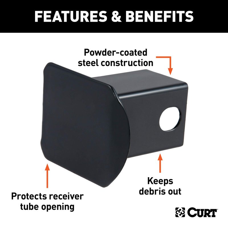 - STANDARD FIT. CURT tow hitch covers come in industry-standard sizes to fit virtually any trailer hitch receiver. This hitch cover is designed to fit a 2-inch x 2-inch receiver tube, perfect for most class 3, class 4 and class 5 hitches